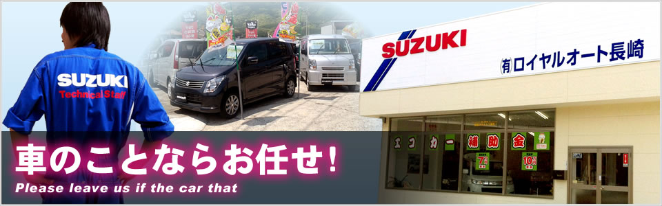 ロイヤルオート長崎は、スズキ自動車の新車販売と、各メーカー中古車販売及び修理・板金塗装・車検・24時間レッカーサービス、その他各種リ-ス取扱い、WAKOSケミカル商品販売、並びに並行輸入車登録手続などの各種登録代行サービスを行っております。